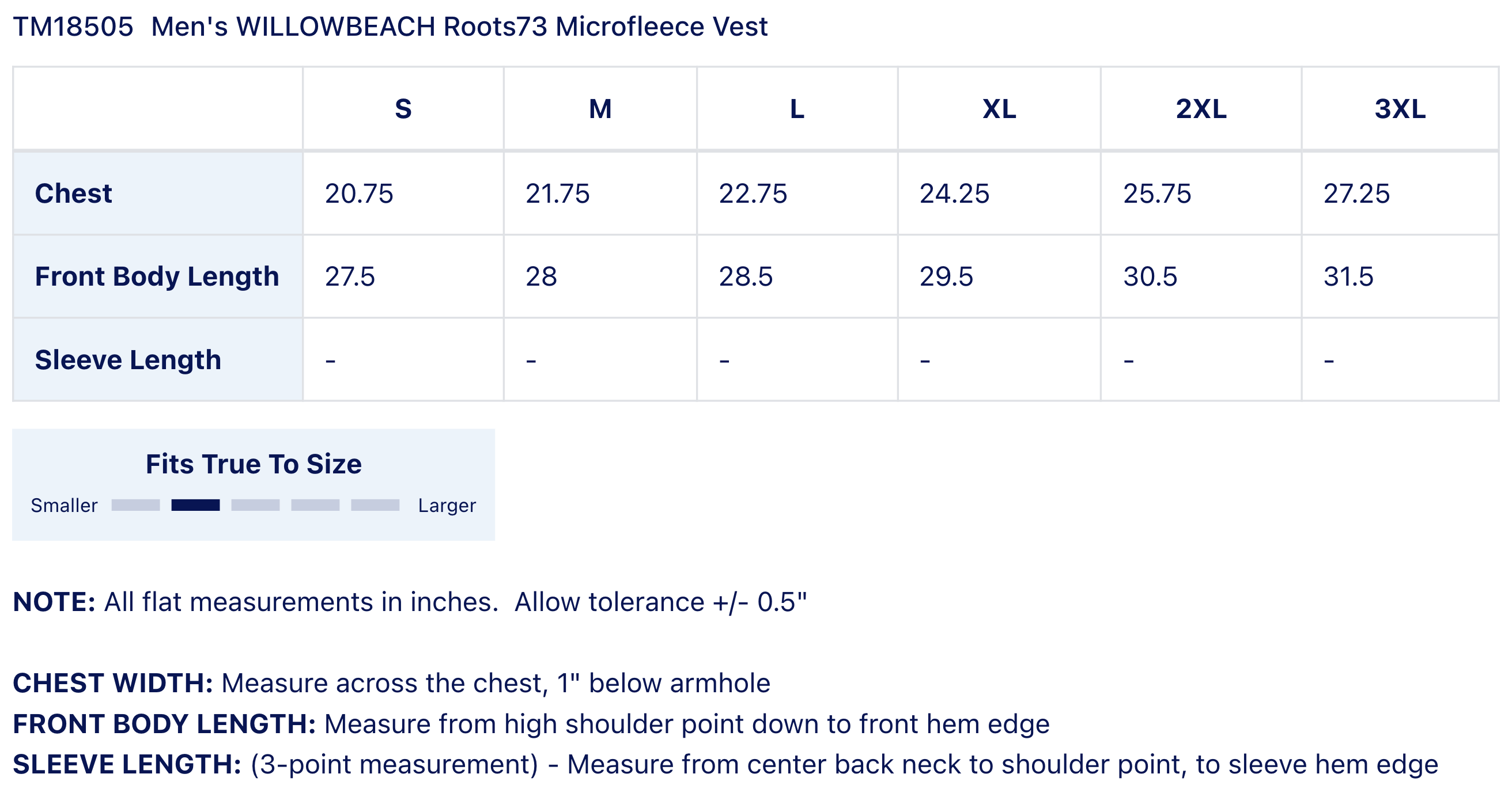 • Sizing Details