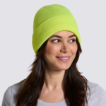 100% Acrylic Roll Cuff Design. Adjustable Cuff shown as 3". Stretchy premium weight with superior shape retention. Fully lined with 100% Polyester polar fleece for added warmth. Tear away label.